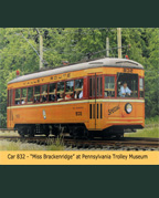 After many years of restoration, Miss Brackenridge was rolled out on June 1, 2018, at the Pennsylvania Trolley Museum at Washington, PA.