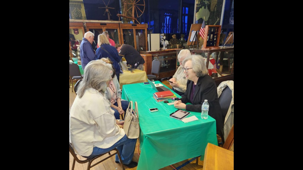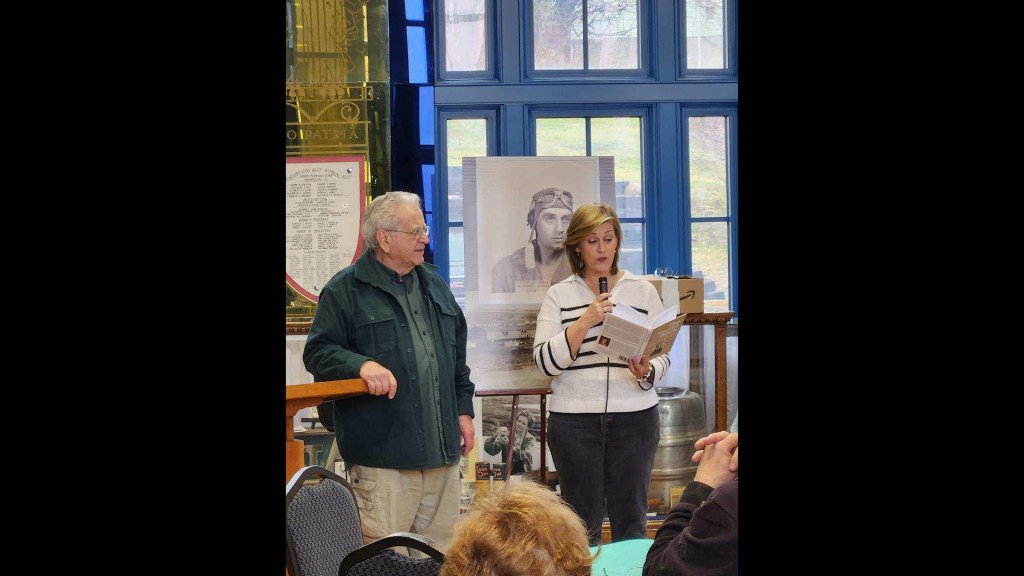 Peggy Fisher discussed her book Daddy Came Home which describes her dad’s experience in WWII focusing on his participation in the infamous Bataan Death March in the Asian Theater.